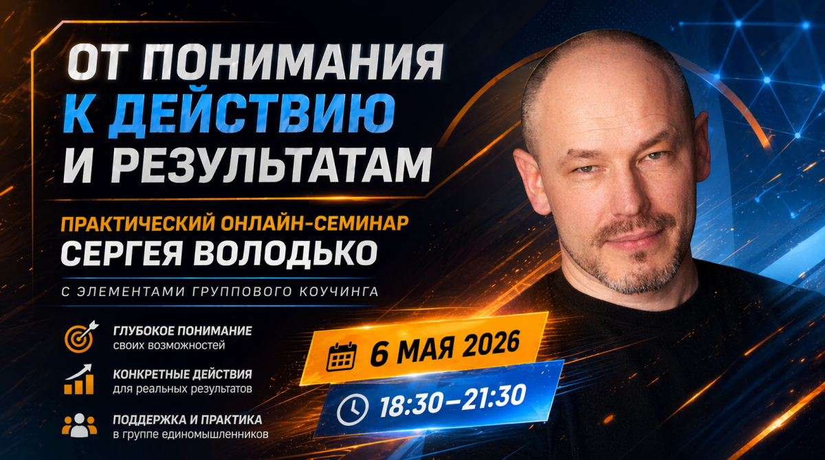 Поэтому 6 мая мы проведем практический семинар «Как перейти от понимания к действию и результатам».